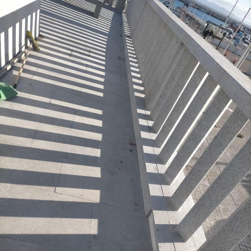 Se eligió granito para la balaustrada, un material duradero y resistente al clima marino, lo que garantiza un bajo mantenimiento a largo plazo.